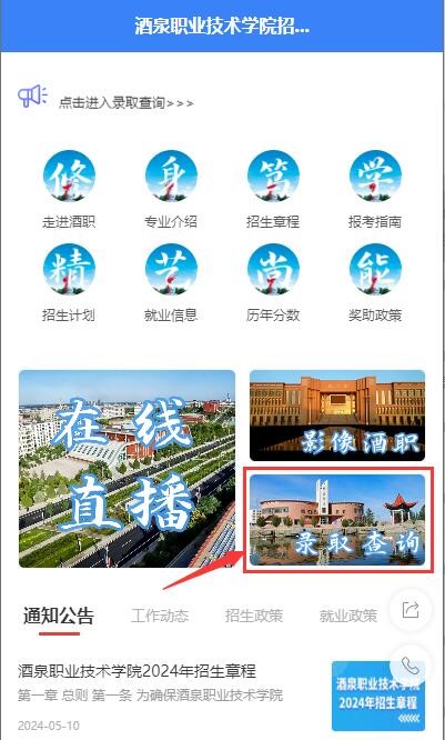 ▼长按扫描以下小程序二维码进入“酒泉职业技术学院招生就业”微信小程序▼