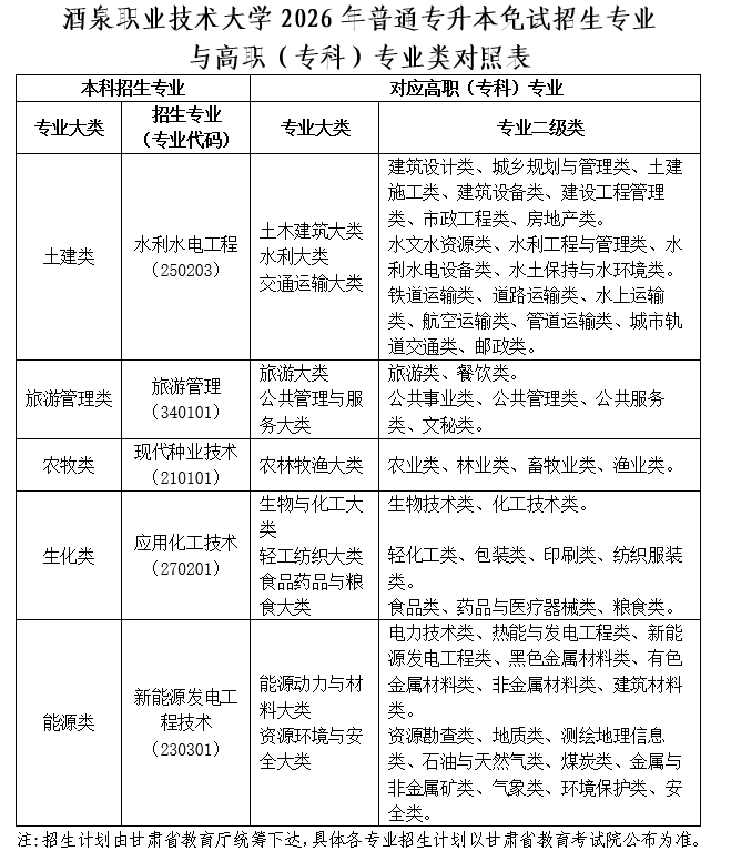 根据甘肃省高等学校招生委员会关于印发《2026年甘肃省普通高校高职(专科)升本科免试生招生工作实施方案》(甘招委发〔2026〕1号)的通知要求,为做好我校2026年专升本免试学生招生录取工作,结合学校实际,特制定本简章。