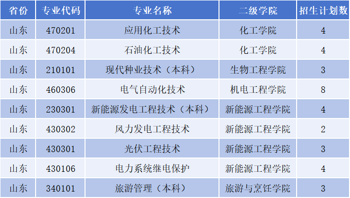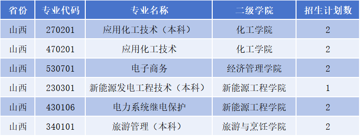 酒泉职业技术大学2025年省外普通高考招生专业及计划