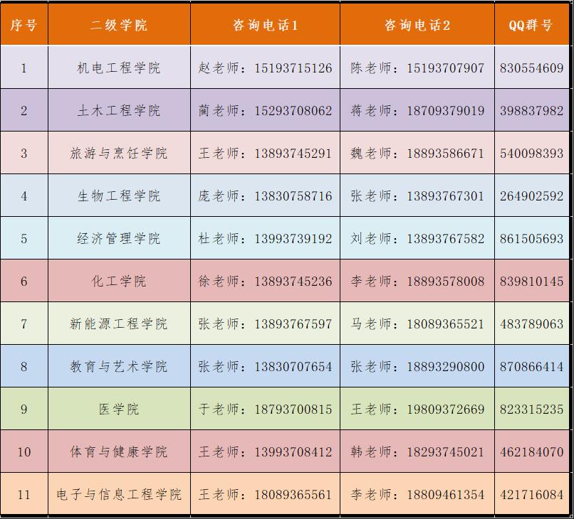 各二级学院招生宣传咨询QQ群: